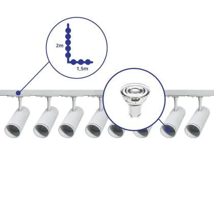 | Manufacturer Name | Complete L shaped 1-Phase Track Set White incl. 8x Spot fixture + GU10 2700K 3W Dim – 1.5 x 2 meters | |