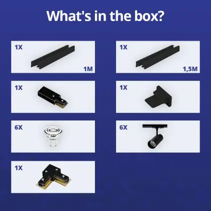 | Manufacturer Name | Complete L shaped 1-Phase Track Set Black incl. 6x Spot fixture + GU10 2700K 3W Dim - 1 x 1,5 meter | |