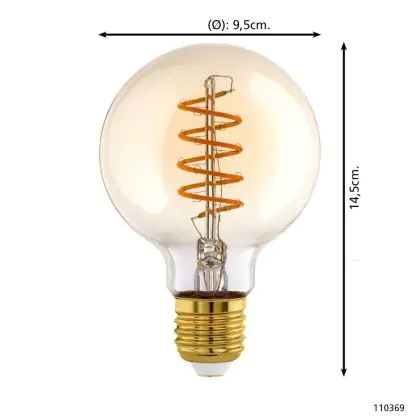 Eglo LED Globe E27 Filament Amber 8W 806lm - 827 Extra Warm White | Dimmable - Replaces 60W