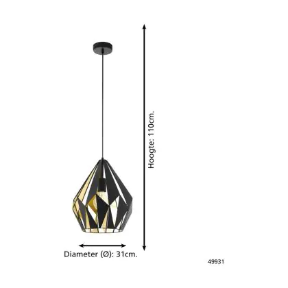 Eglo Pendant Carlton 1 Steel Black Gold | IP20 - Suitable for 1x E27