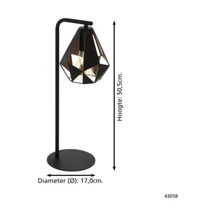 Eglo Table Lamp Carlton 4 Steel Black Copper | IP20 - Suitable for 1x E27