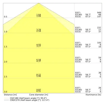 ![]() The colour code is a combination of colour rendering (CRI) and light colour (Kelvin). The first number indicates the colour rendering (1 = very poor colour rendering, 9 = maximum colour fastness). The second and third number contains the light colour. Example: the colour code 830 consists of good colour rendering (8) and warm white light (3000K). |