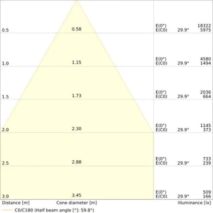 ![]() The colour code is a combination of colour rendering (CRI) and light colour (Kelvin). The first number indicates the colour rendering (1 = very poor colour rendering, 9 = maximum colour fastness). The second and third number contains the light colour. Example: the colour code 830 consists of good colour rendering (8) and warm white light (3000K). |