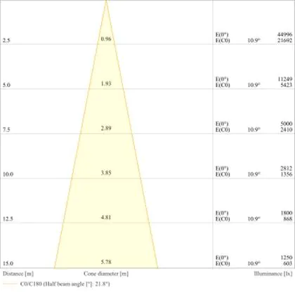 A beam angle indicates the angle of the light beam coming from a light source. The smaller the radiation angle in degrees (D), the narrower the beam angle.