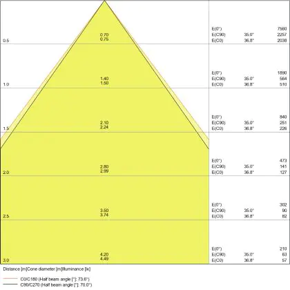 ![]() The colour code is a combination of colour rendering (CRI) and light colour (Kelvin). The first number indicates the colour rendering (1 = very poor colour rendering, 9 = maximum colour fastness). The second and third number contains the light colour. Example: the colour code 830 consists of good colour rendering (8) and warm white light (3000K). |