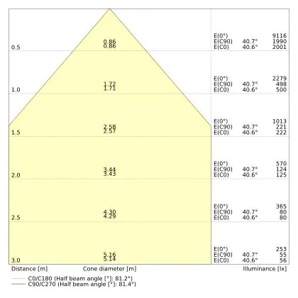 ![]() The colour code is a combination of colour rendering (CRI) and light colour (Kelvin). The first number indicates the colour rendering (1 = very poor colour rendering, 9 = maximum colour fastness). The second and third number contains the light colour. Example: the colour code 830 consists of good colour rendering (8) and warm white light (3000K). |