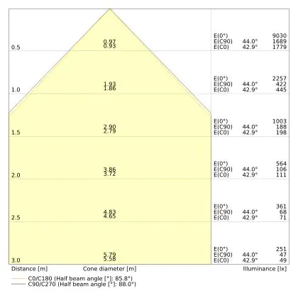 ![]() The colour code is a combination of colour rendering (CRI) and light colour (Kelvin). The first number indicates the colour rendering (1 = very poor colour rendering, 9 = maximum colour fastness). The second and third number contains the light colour. Example: the colour code 830 consists of good colour rendering (8) and warm white light (3000K). |