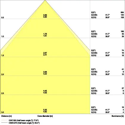 ![]() The colour code is a combination of colour rendering (CRI) and light colour (Kelvin). The first number indicates the colour rendering (1 = very poor colour rendering, 9 = maximum colour fastness). The second and third number contains the light colour. Example: the colour code 830 consists of good colour rendering (8) and warm white light (3000K). |