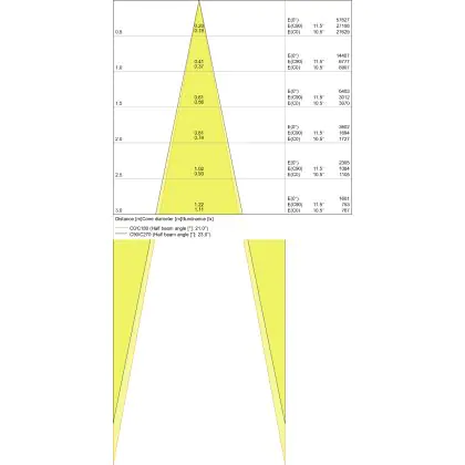 ![]() The colour code is a combination of colour rendering (CRI) and light colour (Kelvin). The first number indicates the colour rendering (1 = very poor colour rendering, 9 = maximum colour fastness). The second and third number contains the light colour. Example: the colour code 830 consists of good colour rendering (8) and warm white light (3000K). |