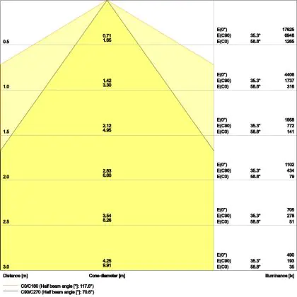 A beam angle indicates the angle of the light beam coming from a light source. The smaller the radiation angle in degrees (D), the narrower the beam angle.