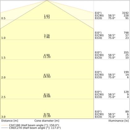![]() The colour code is a combination of colour rendering (CRI) and light colour (Kelvin). The first number indicates the colour rendering (1 = very poor colour rendering, 9 = maximum colour fastness). The second and third number contains the light colour. Example: the colour code 830 consists of good colour rendering (8) and warm white light (3000K). |