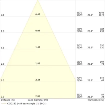 ![]() The colour code is a combination of colour rendering (CRI) and light colour (Kelvin). The first number indicates the colour rendering (1 = very poor colour rendering, 9 = maximum colour fastness). The second and third number contains the light colour. Example: the colour code 830 consists of good colour rendering (8) and warm white light (3000K). |