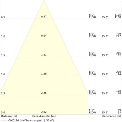 A beam angle indicates the angle of the light beam coming from a light source. The smaller the radiation angle in degrees (D), the narrower the beam angle.