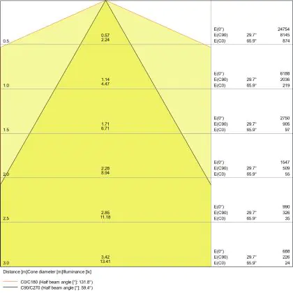 ![]() The colour code is a combination of colour rendering (CRI) and light colour (Kelvin). The first number indicates the colour rendering (1 = very poor colour rendering, 9 = maximum colour fastness). The second and third number contains the light colour. Example: the colour code 830 consists of good colour rendering (8) and warm white light (3000K). |