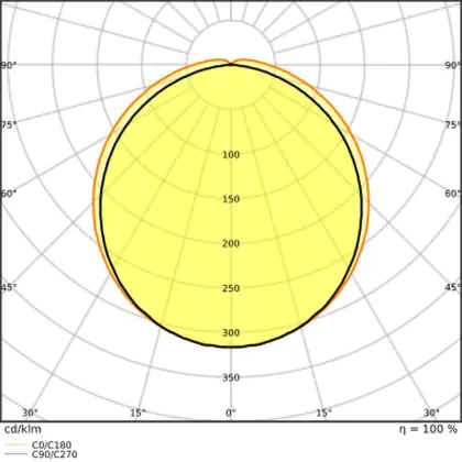 The Luminous Efficacy (lm/W) indicates how efficiently a light source uses energy. We divide the number of lumens by the wattage. The higher the number, the more efficient a product is in terms of energy consumption. LED lighting has a considerably higher lumen/Watt ratio than conventional lighting.