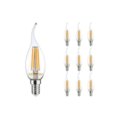Multipack 10x Noxion Lucent LED E14 Bent-tip Candle Filament Clear 4.5W 470lm - 827 Extra Warm White | Dimmable - Replaces 40W