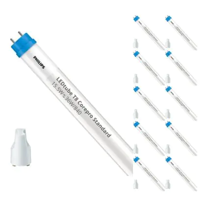 Multipack 10x Philips LED Tube T8 CorePro (EM/Mains) 18W 2000lm - 840 Cool White | 120cm - Replaces 36W