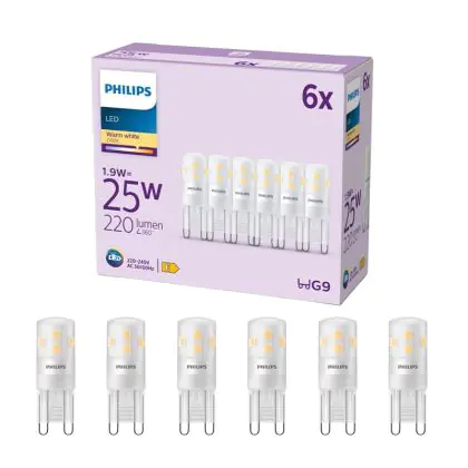 Multipack 6x Philips LED Capsule G9 Frosted 1.9W 220lm - 827 Extra Warm White