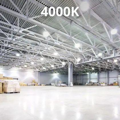The cool white light of this high bay is mostly used in industry, warehouses, gas stations or supermarkets.