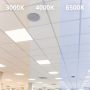 The most common sizes of LED panels are 60x60cm (square) and 30x120cm (rectangular). These are standard sizes for almost all suspended ceilings. There are also various other dimensions available, such as 20x120cm or 15x150cm.