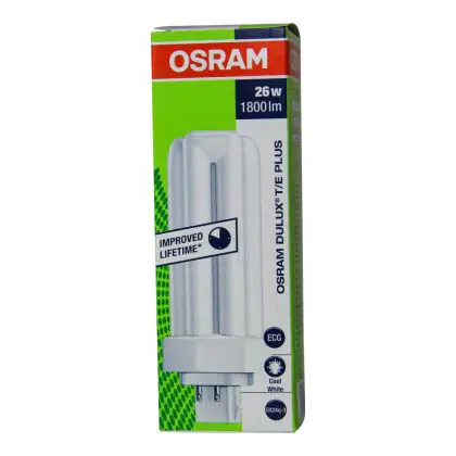 Also, the Osram DULUX T/E 26W/840 PLUS GX24q-3 Lumilux Cool Whitelifespan is very long, up to 13000 hours. These lamps are also very energy efficient, they have an energy label classified A.