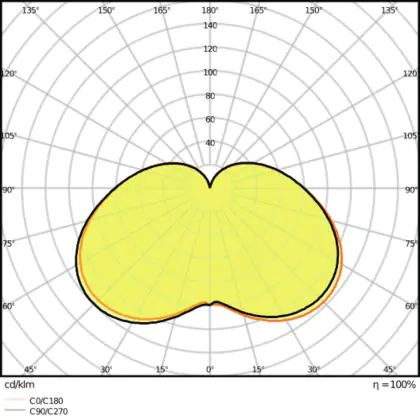 The Luminous Efficacy (lm/W) indicates how efficiently a light source uses energy. We divide the number of lumens by the wattage. The higher the number, the more efficient a product is in terms of energy consumption. LED lighting has a considerably higher lumen/Watt ratio than conventional lighting.