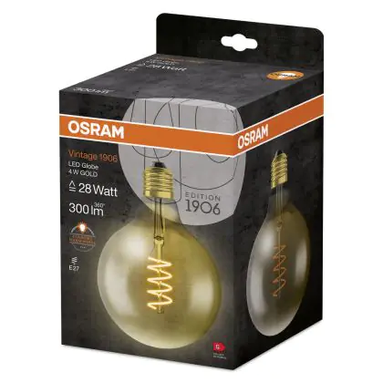 Osram Vintage 1906 LED E27 Globe Filament Gold 125mm 5W 250lm - 820 Extra Warm White | Replaces 25W