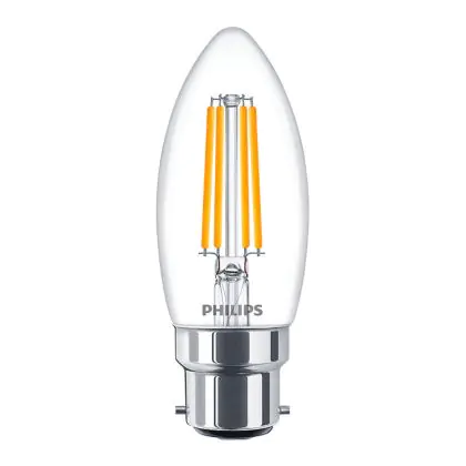 Philips Classic LED Candle B22 Filament Clear 5W 470lm - 827 Extra Warm White | Dimmable - Replaces 40W